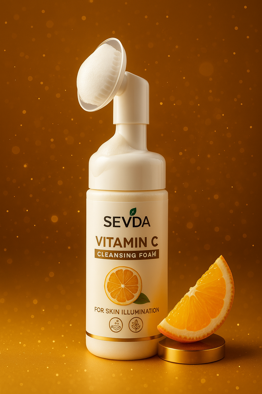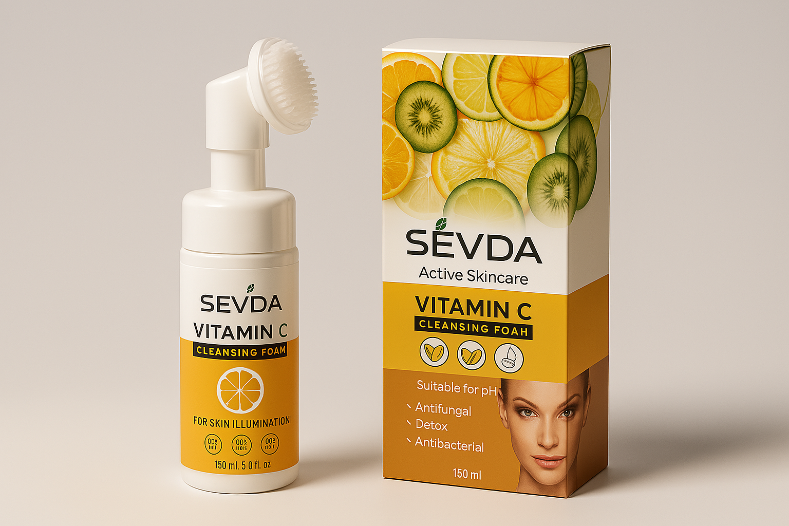 فوم شستوشو صورت سودا برس دار SEVDA مدل ویتامین سی حجم 150 میلی لیتری